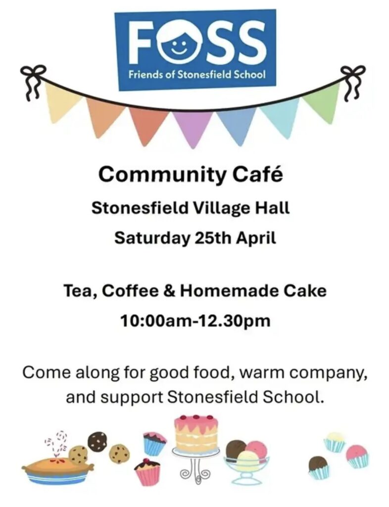 Friends of Stonesfield School will be hosting a Community Café at the Village Hall on Saturday 25 April.