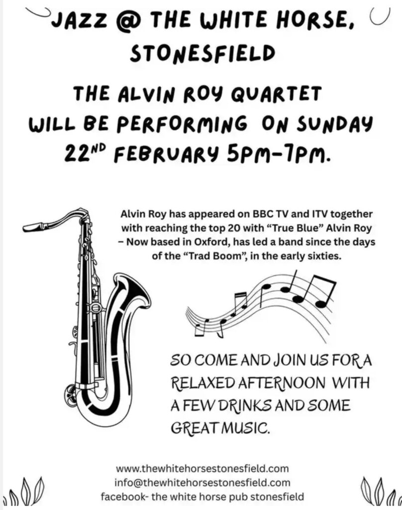 The White Horse will be hosting the Alvin Roy Quartet on Sunday 22 Feb, 5 -7pm.