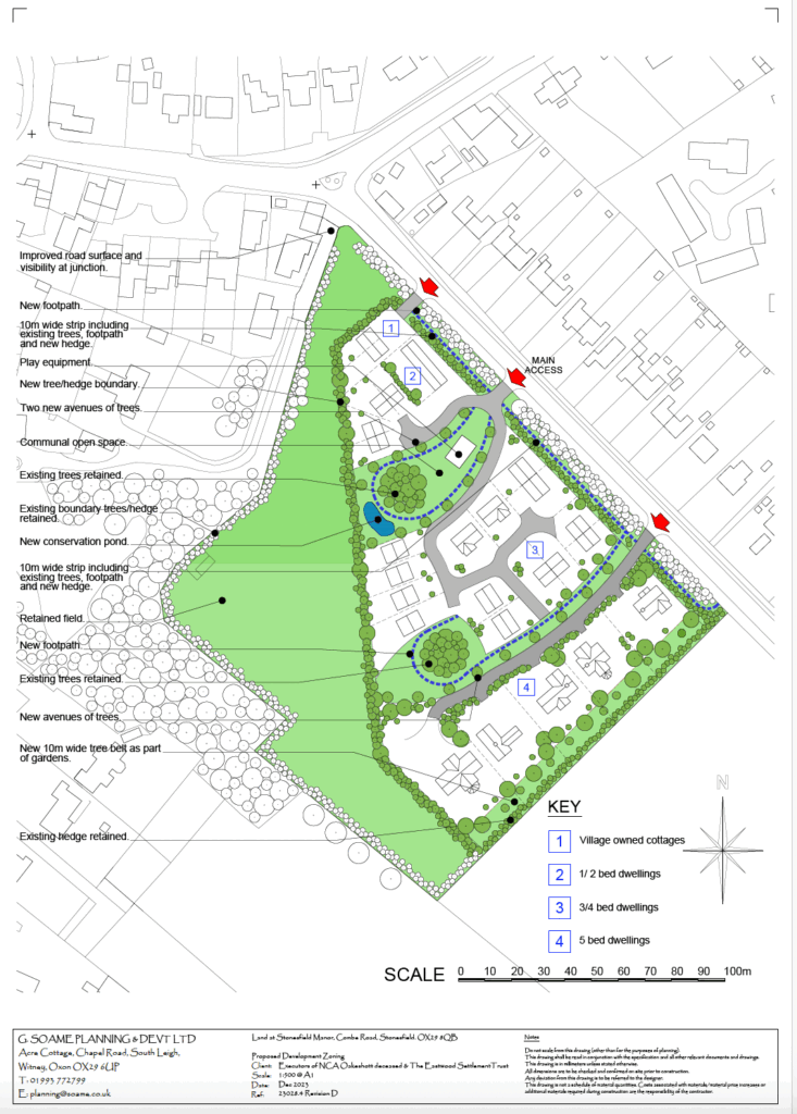 A planning application (ref 25/01897/OUT) has been made for 20 houses on the Combe Road site.