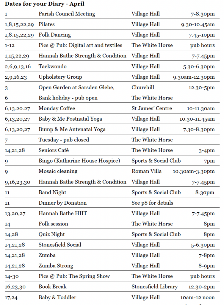 Stonesfield in April Mar 31, 2026 | What's on Check with organisers in case of any late changes. More information in April’s Slate