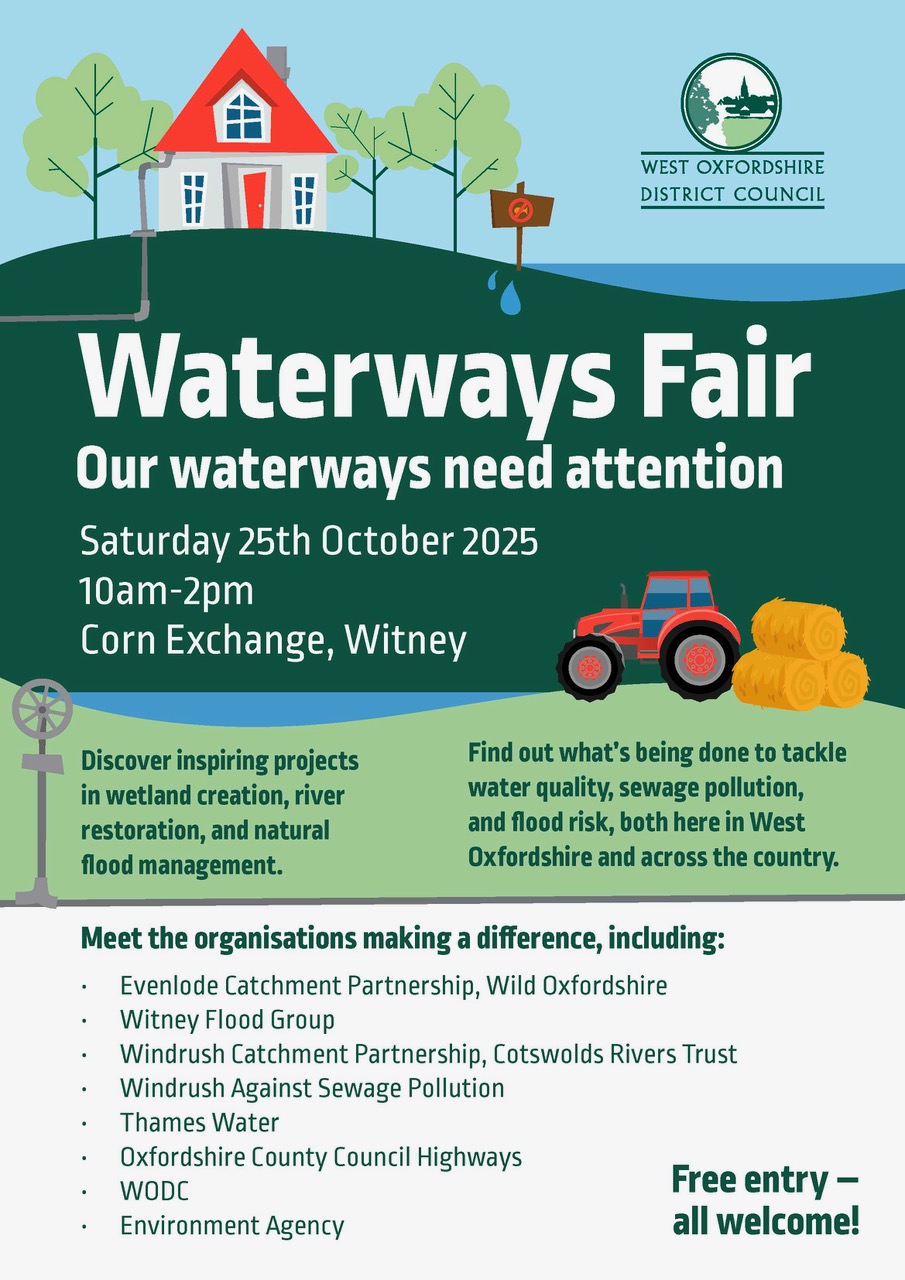 The fair will bring together a wide range of organisations such as Witney Flood Group, Evenlode Catchment Partnership, Thames Water, WASP and more, all working to protect and improve our rivers, streams and wetlands.